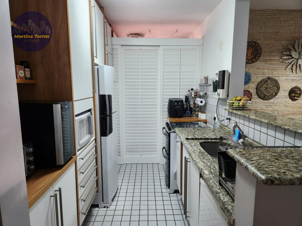 Apartamento aconchegante com 98m², sala de estar e jantar, planta original de 3 quartos, sendo 2 integrados (2 suítes) para ter ainda mais conforto, cozinha planejada, 2 banheiros, lavabo e 2 vagas de garagem.